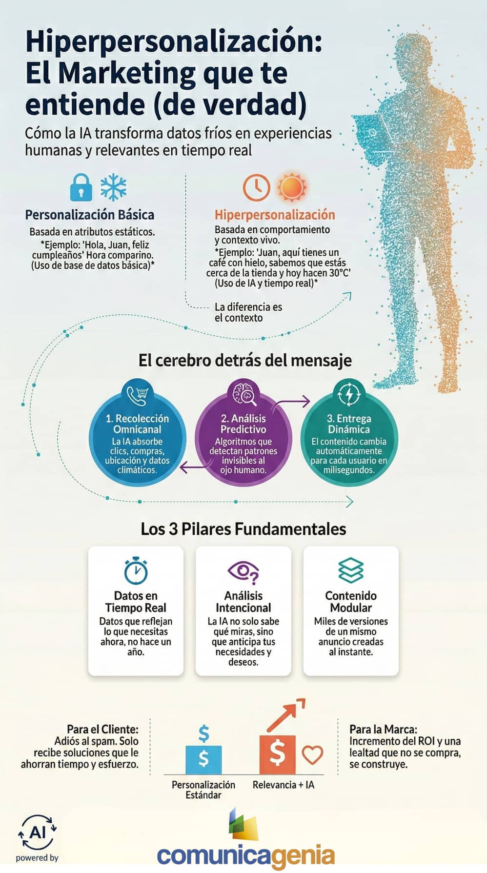 En Comunicagenia, creemos que la tecnología debe estar al servicio de la comunicación. Si estás listo para que tu marca deje de gritar a la multitud y empiece a susurrar al oído de cada cliente, la hiperpersonalización es tu mejor aliada.